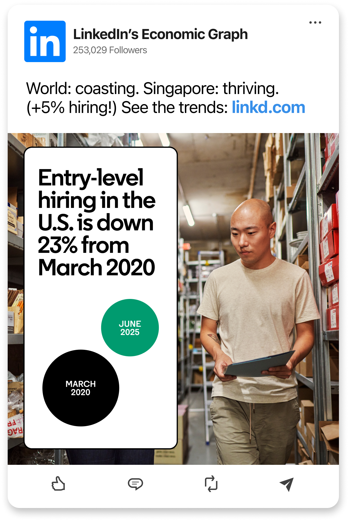 Amidst LinkedIn’s overall brand design development and ideation in 2025, I was tasked to develop a visual system for LinkedIn’s Economic Graph Research Institute — the fancy name for the division of the company that studies LinkedIn data and turns it into thought leadership for businesses, individuals, and policy makers around the world.